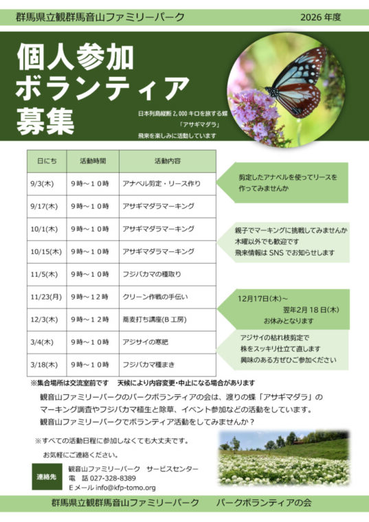 年に2-5回程度、公園から「イベント時の運営ボランティア」としてメールでご案内します。